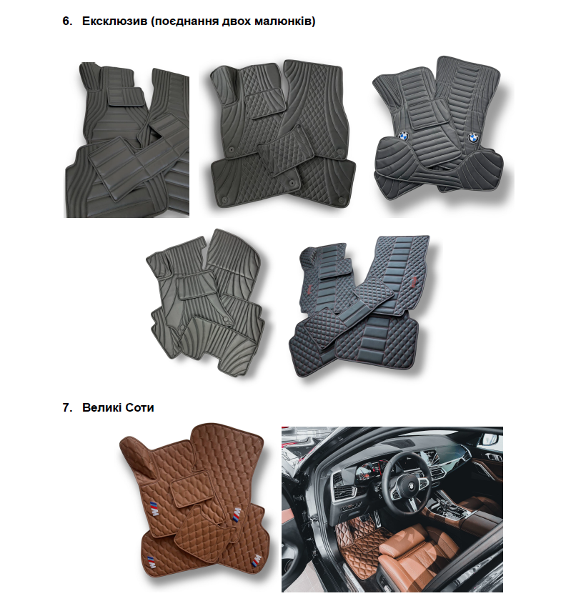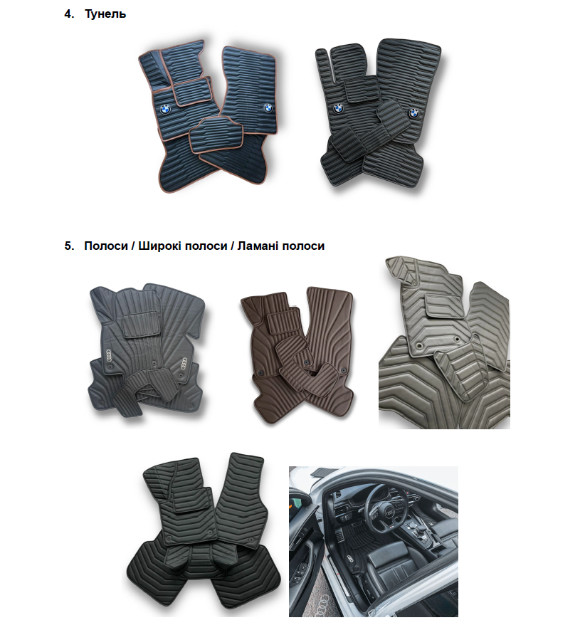 Ідеально лягають на своє місце, повторюючи кожну лінію в салоні. Виготовляються вручну за власними лекалами.
