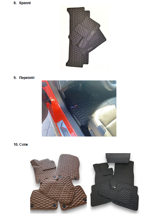 3D комплекти, окрім 3D лапи, закривають до 98% заводського ковроліну. Вони виготовляються з бортиками